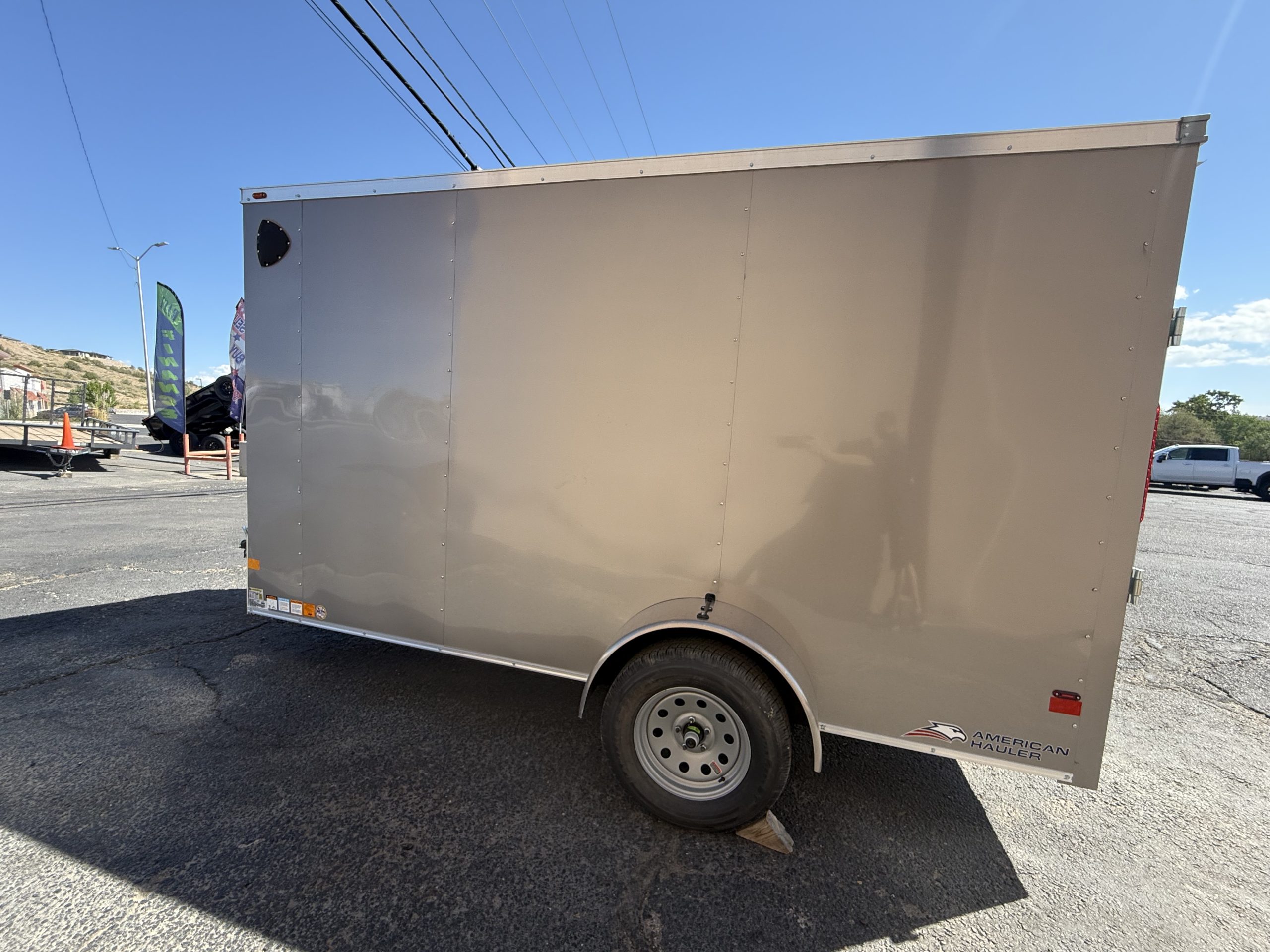 This 2026 American Hauler Arrow Deluxe trailer is built for homeowners or professionals who need reliable cargo space. With a pewter exterior, 78″ interior height and 6×12 dimensions, it’s both stylish and practical.