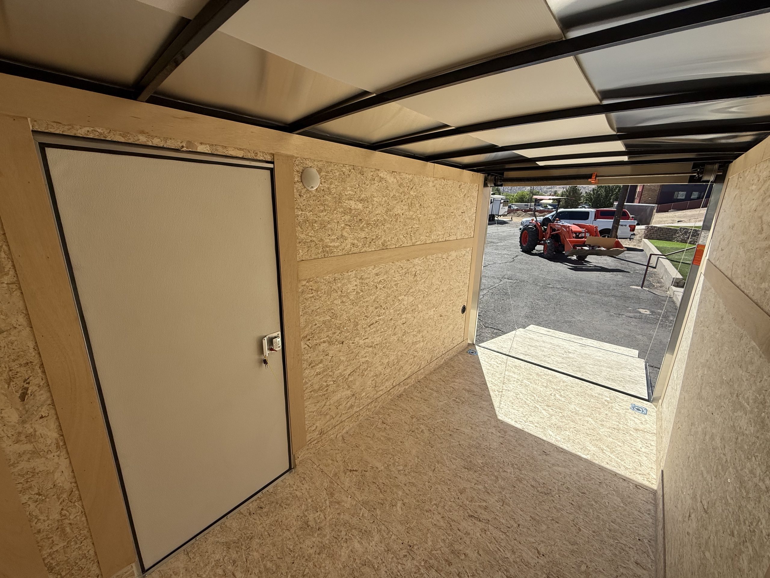 Heavy‑duty 2,000‑lb rear ramp door with deluxe trim and ramp extension for easy loading.