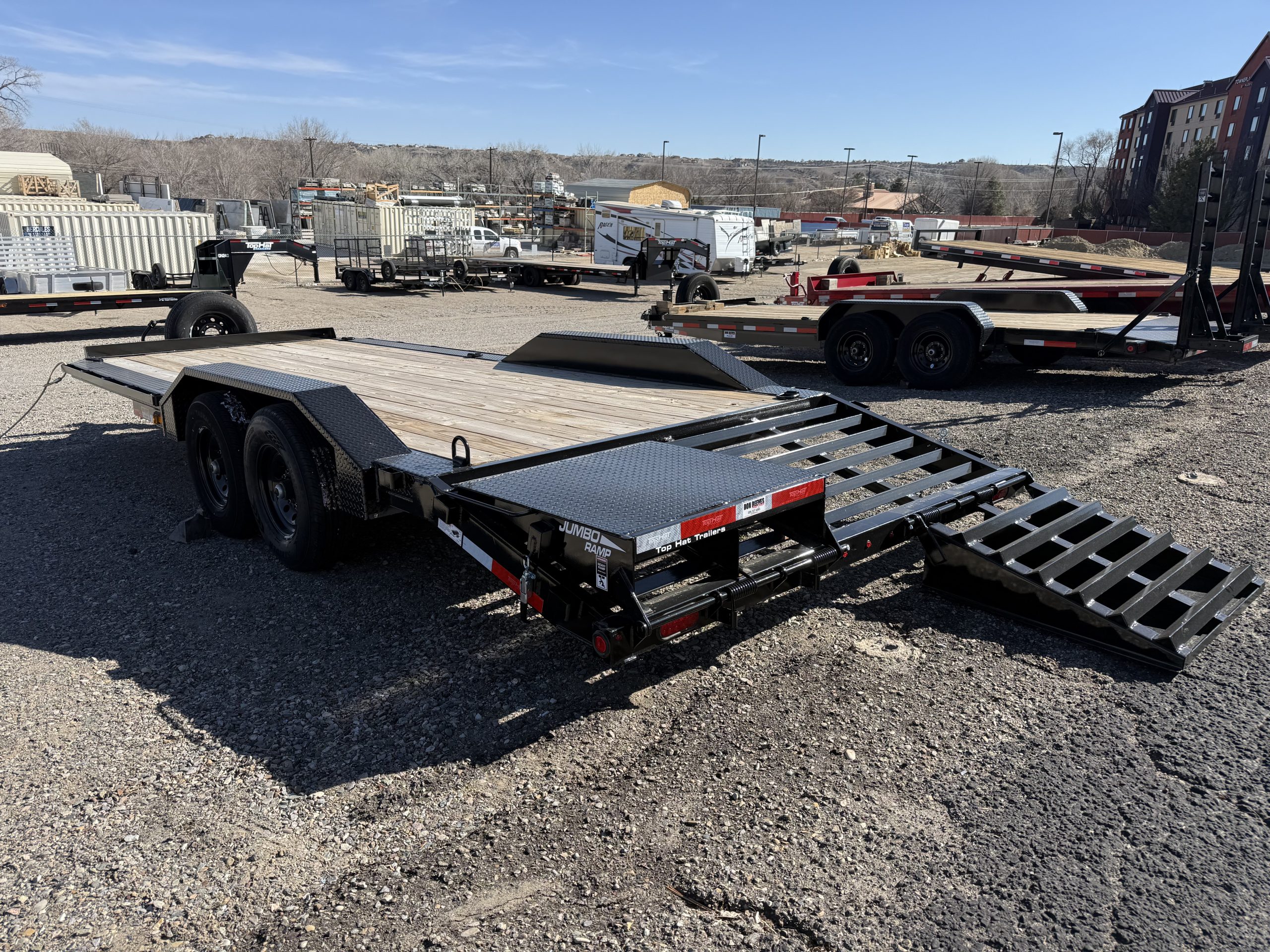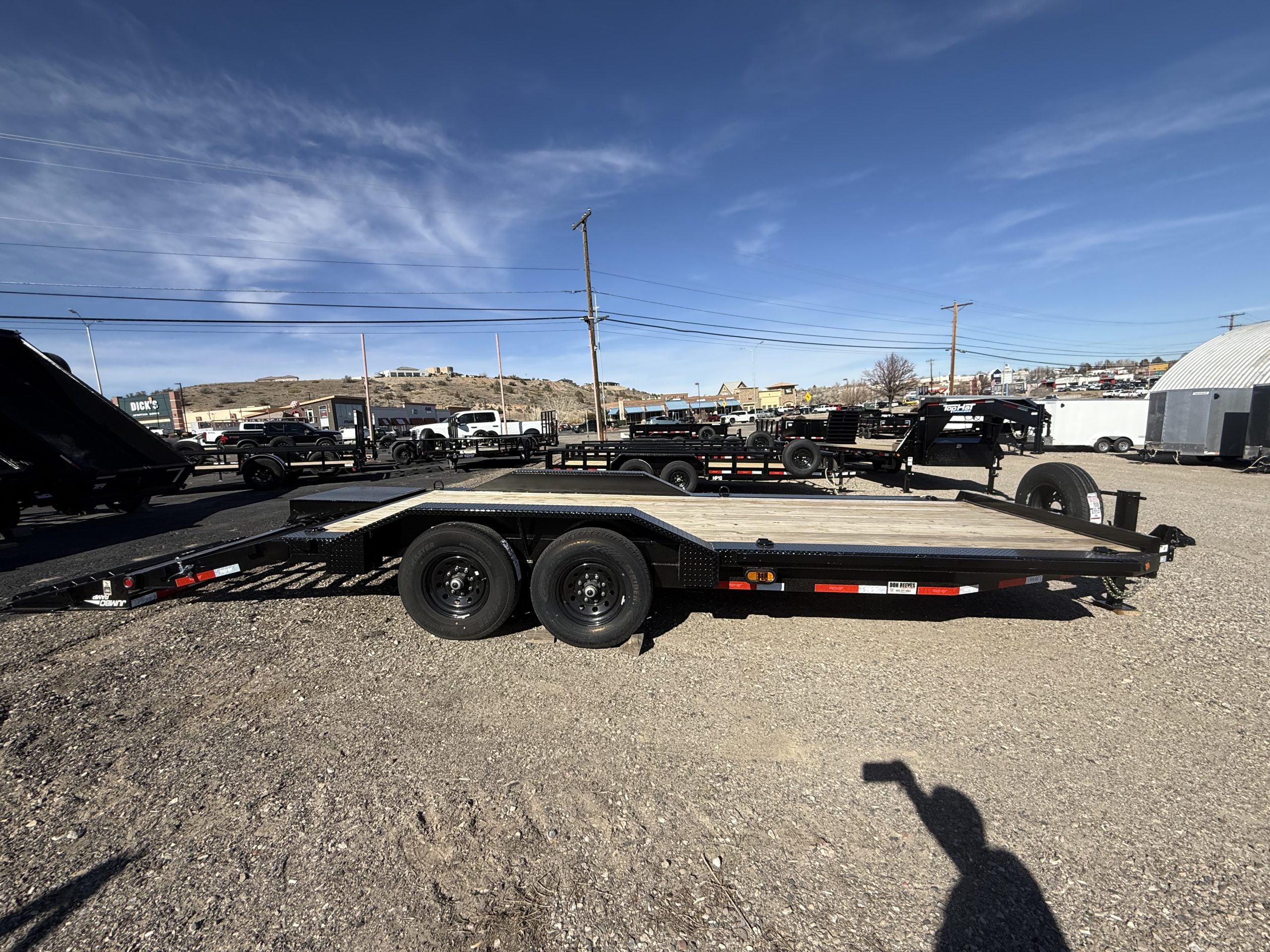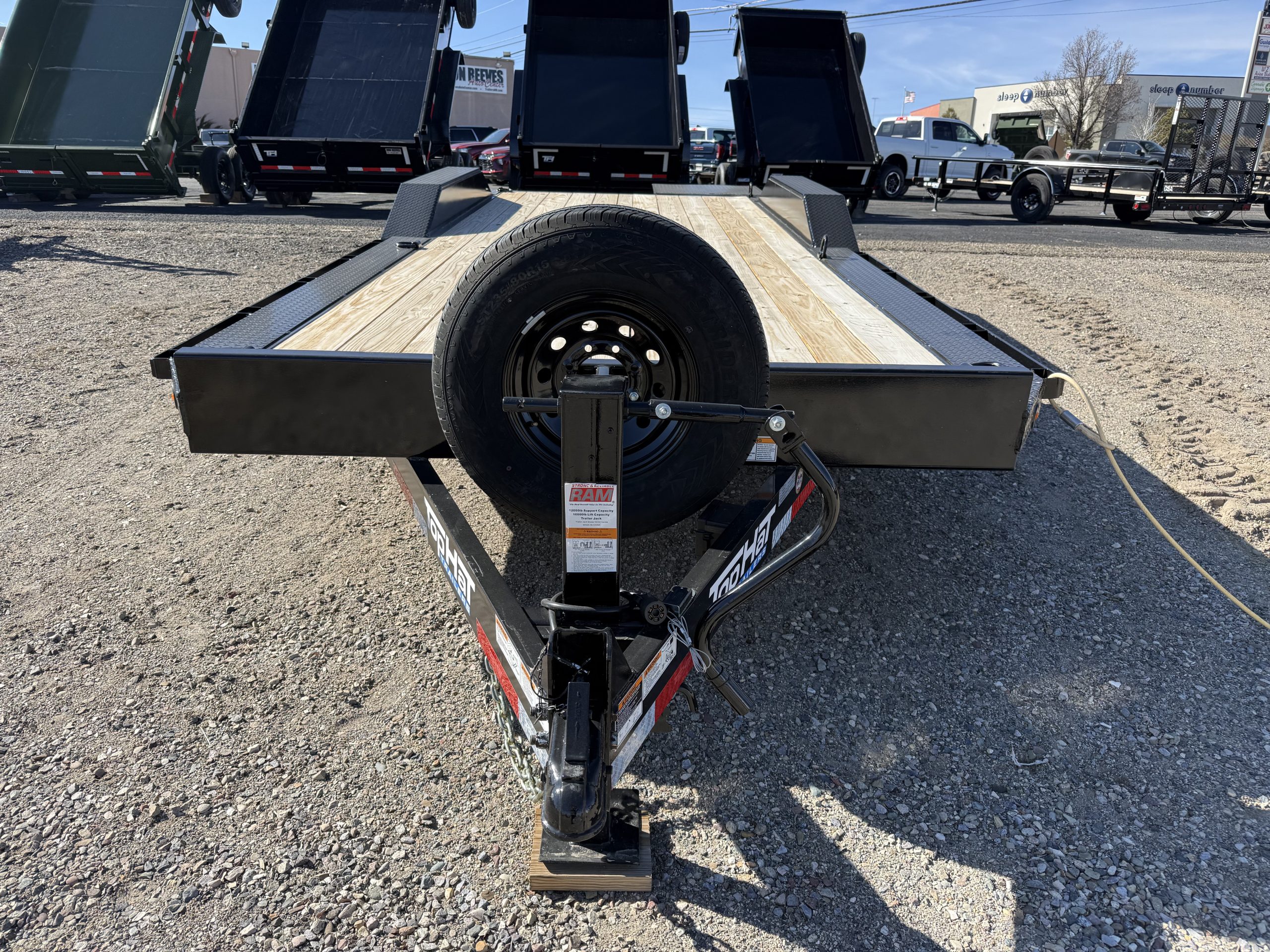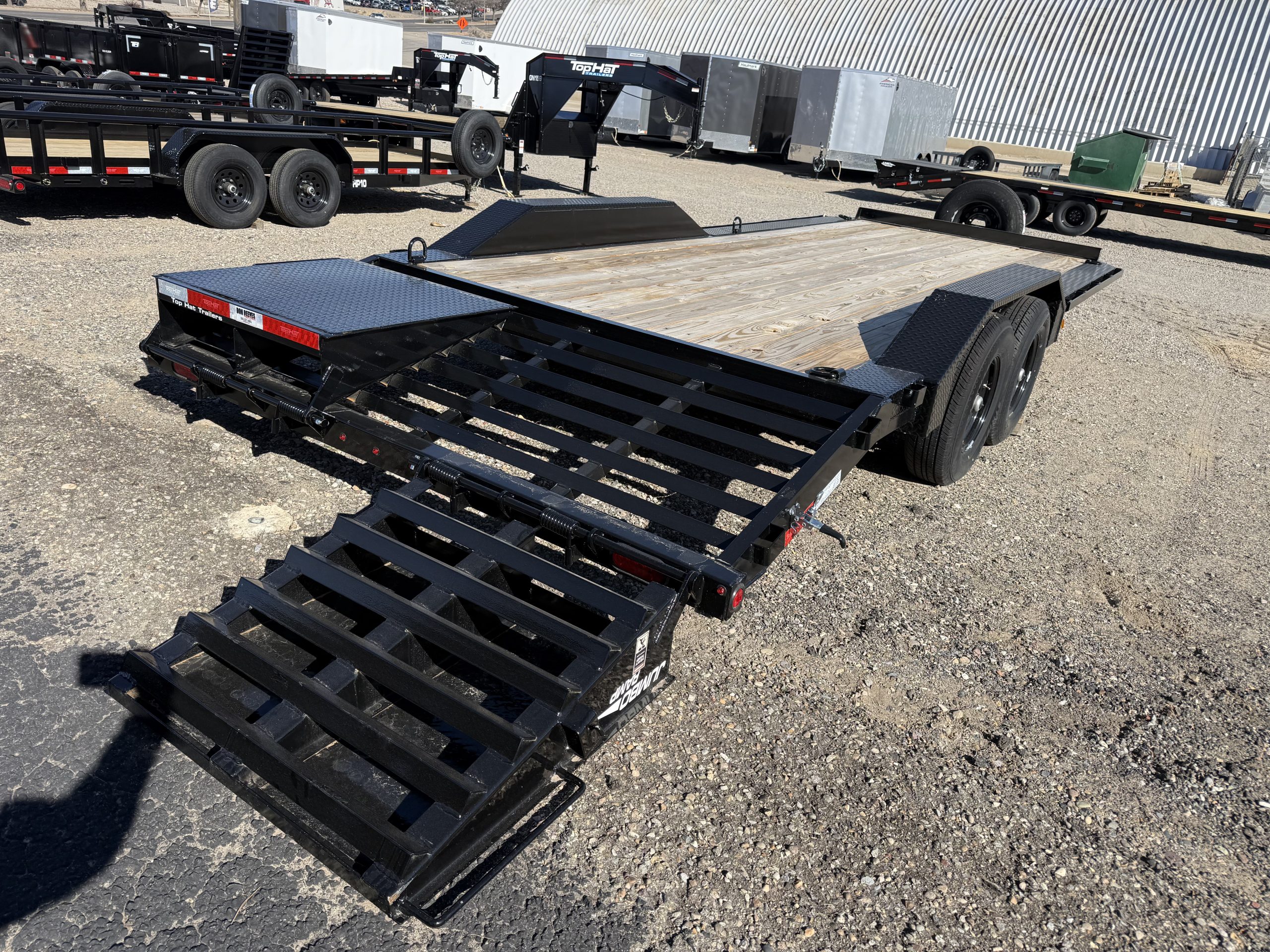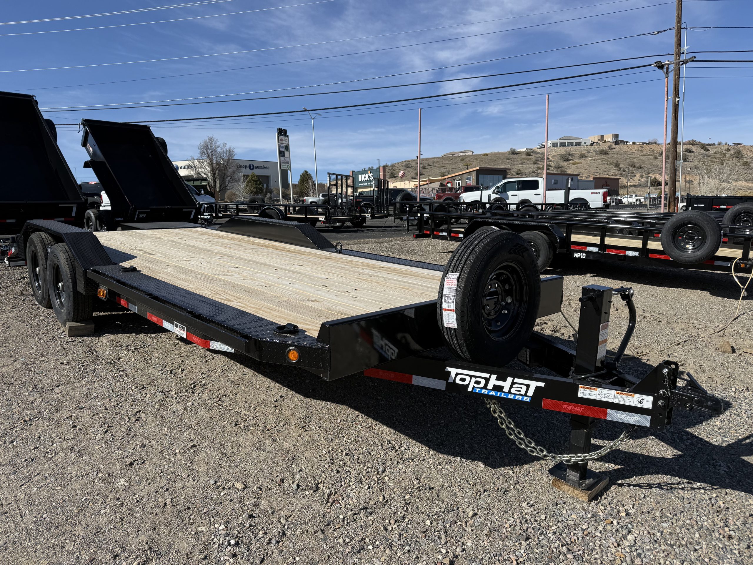 The 2026 Top Hat Trailers WDO22X83-14E-F, located in Farmington, NM, is available new from our lot, providing a robust solution for your hauling needs. This trailer, with its 22-foot length and 83-inch width, is perfectly suited for a variety of uses, from car hauling to transporting racing equipment or heavy machinery. Its black C-Channel frame and Dovetail tail ensure durability and ease of loading, making it a reliable choice for both commercial and personal use.