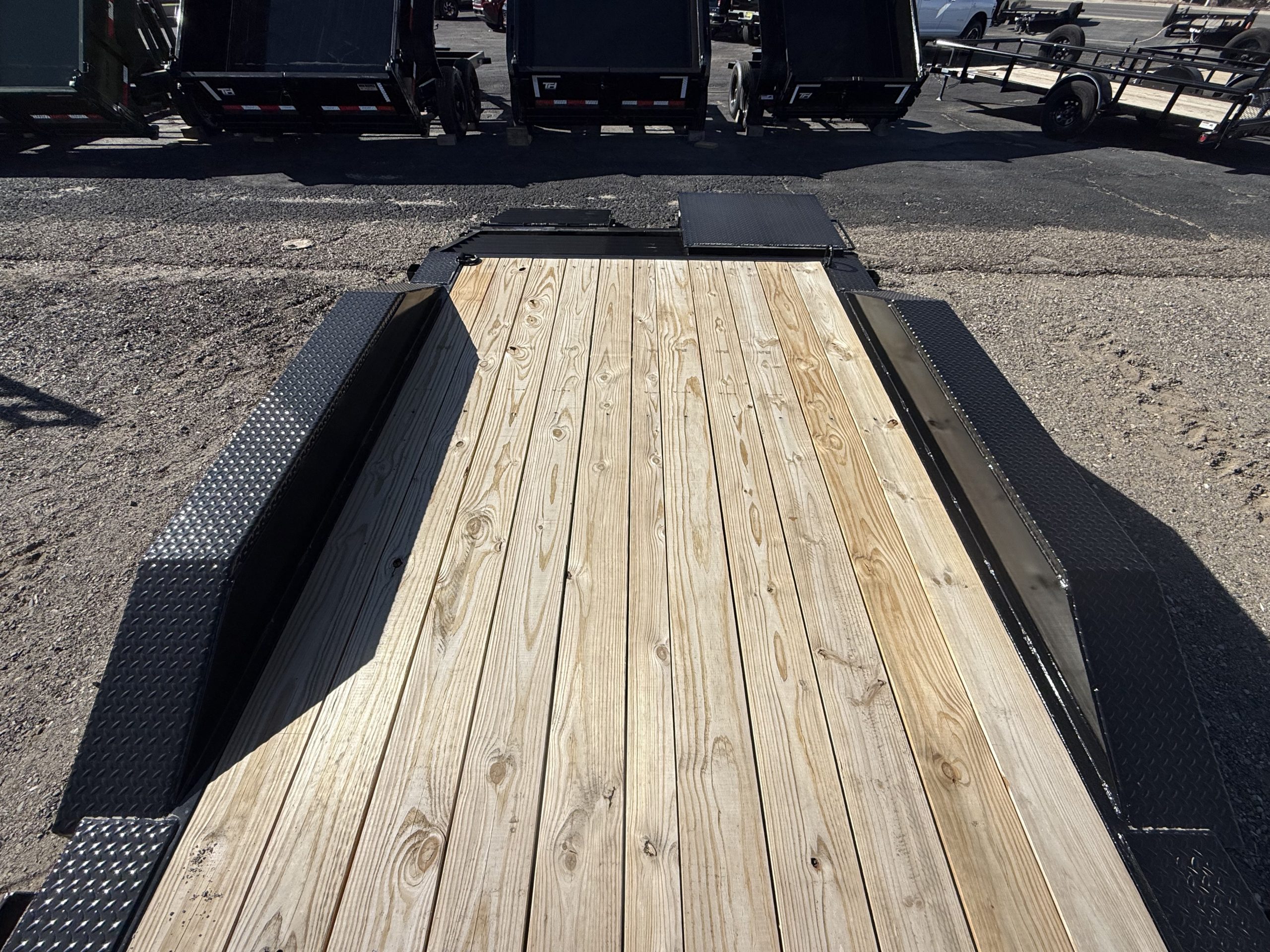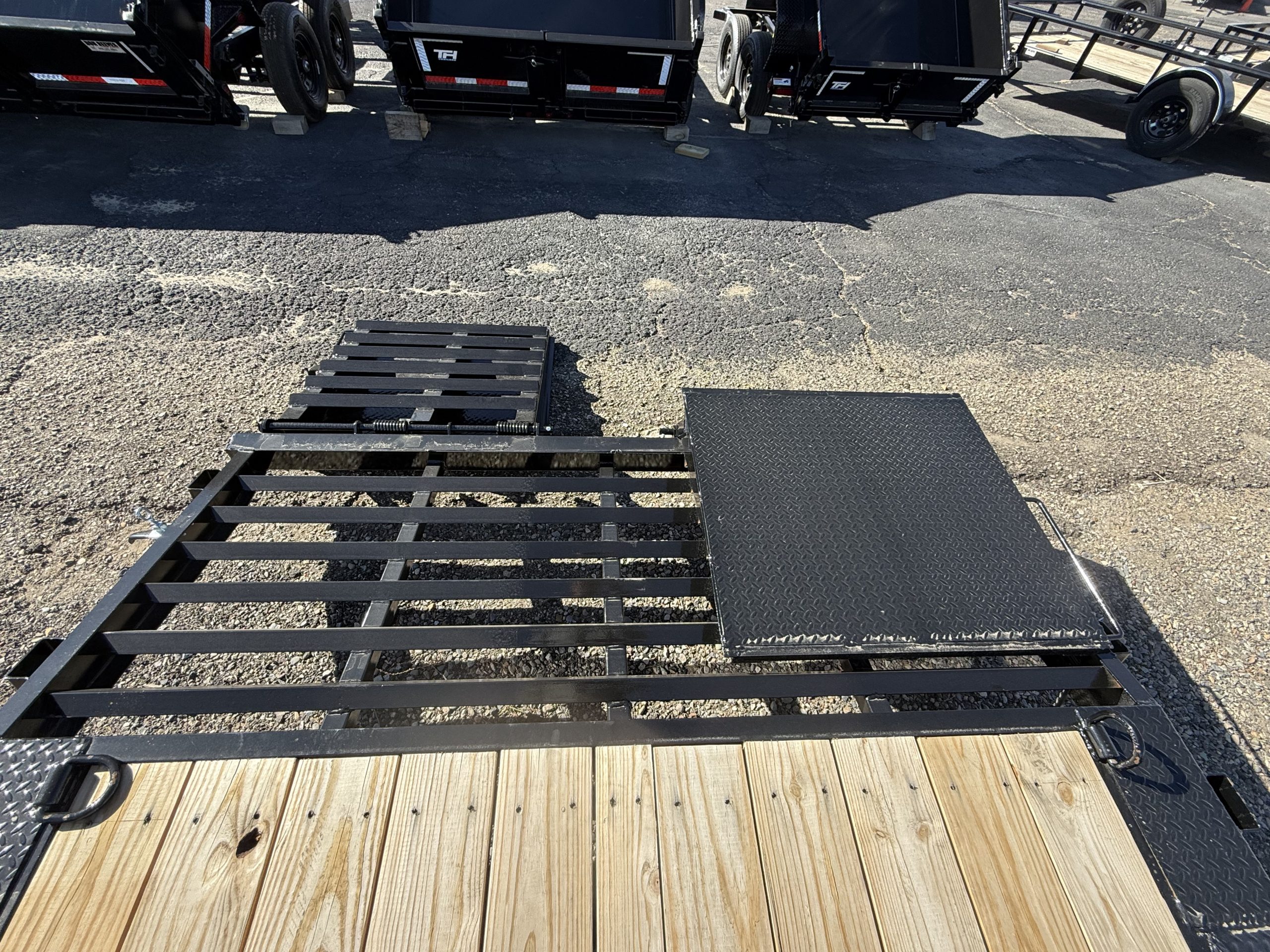 Equipped with dual 7,000-pound axles and a substantial Gross Vehicle Weight Rating (GVWR) of 14,000 pounds, this trailer is built to handle heavy loads. The Mini Mammoth Ramps offer convenience and safety when loading and unloading vehicles or equipment. With a payload capacity of 9,670 pounds, the trailer is exceptionally capable, ensuring that you can transport your goods securely and efficiently.