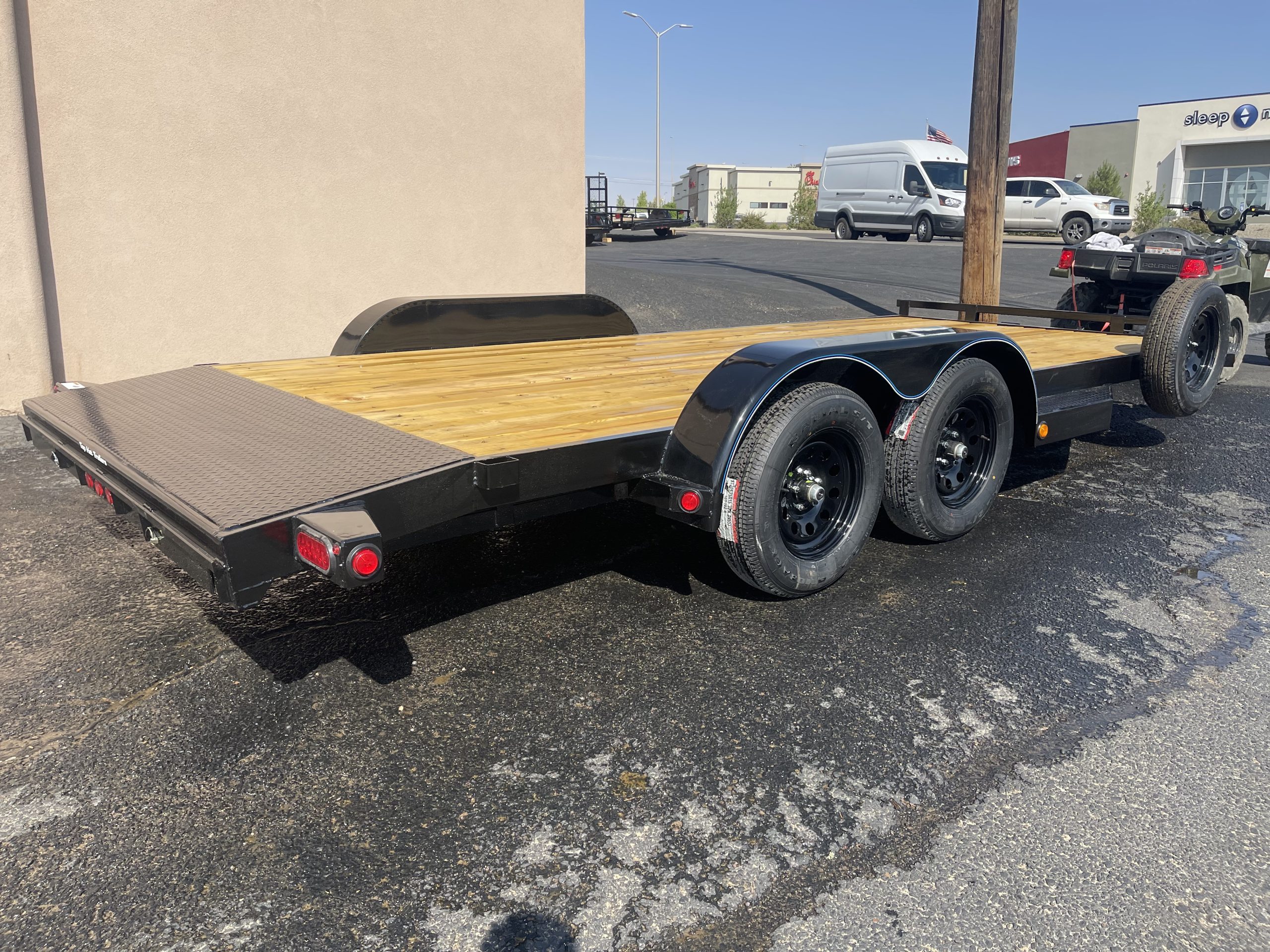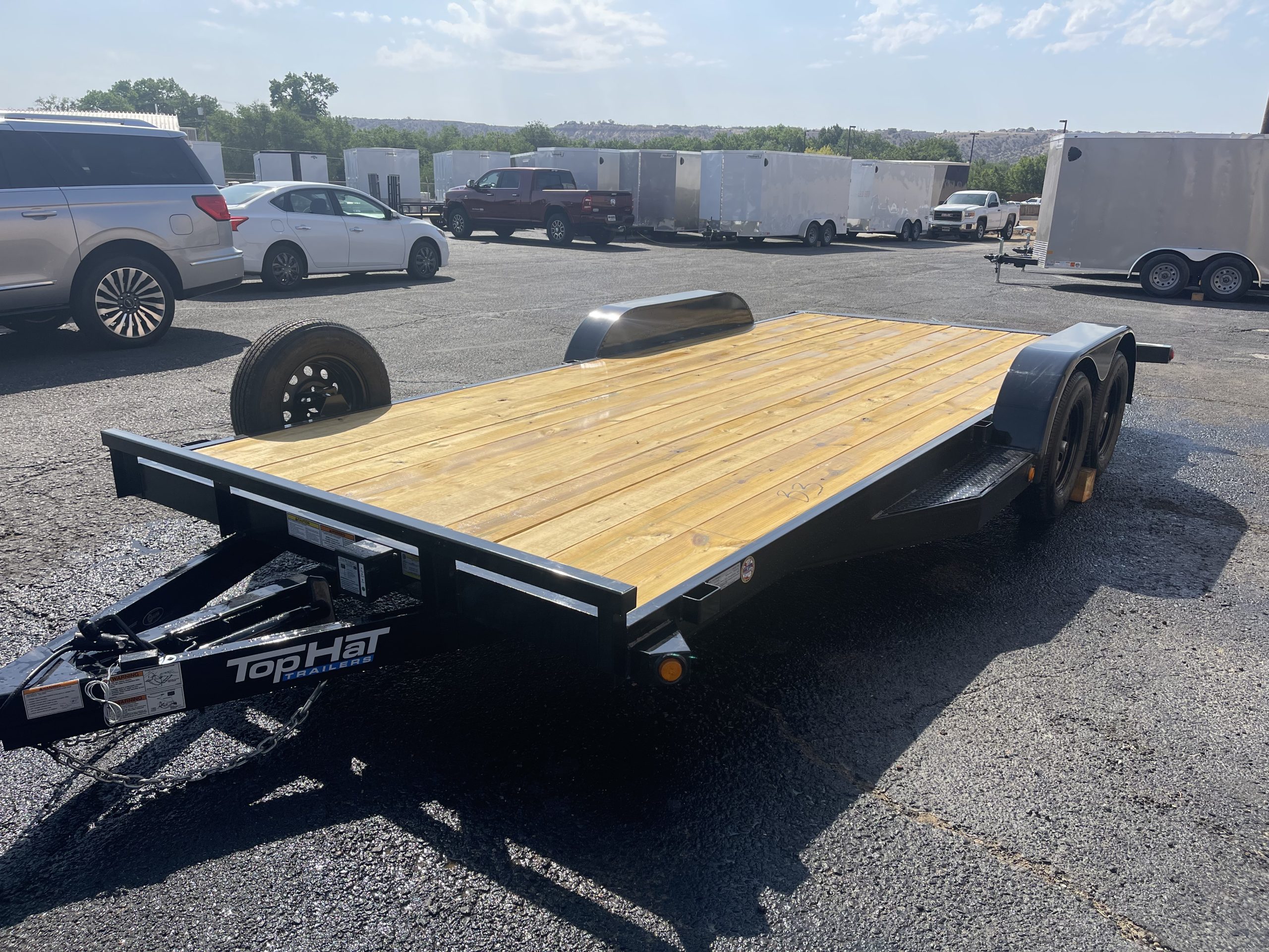 The 2026 Top Hat Trailers DC07-18X83-7E-R, now available new from our lot in Farmington, NM, brings unmatched quality and utility to your towing needs. With its robust C-Channel frame and durable black finish, this trailer is designed for longevity and performance. The 18-foot length and 83-inch width provide ample space, making it perfect for transporting large equipment or materials securely.
