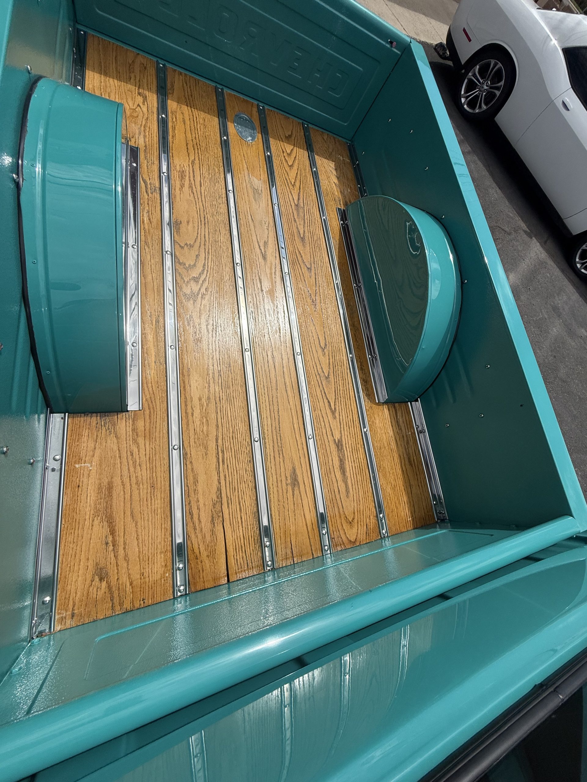 Frenched antenna, louvered tailgate, and wood/stainless bed floor